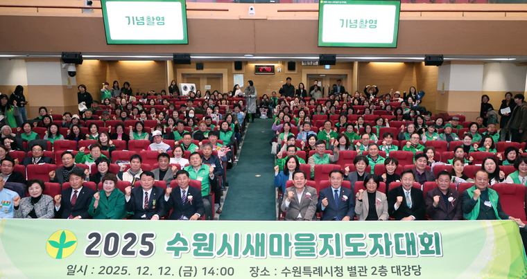 수원특례시의회(의장 이재식)는 "12일, 수원시청 대강당에서 열린 ‘2025년 수원시 새마을지도자대회’에 이재식 의장이 참석해 한 해 동안 봉사한 새마을지도자들의 노고를 격려했다"고 밝혔다.