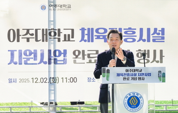 앞으로 수원시민들은 아주대학교내 인조잔디 운동장을 365일 마음놓고 이용할 수 있다. 수원특례시와 아주대학교가 협력해 아주대학교 운동장 교체사업을 완료했고 시민들에게 개방하기 때문이다. 수원특례시(시장 이재준)에 따르면 "시는 인조잔디 교체사업으로 경기도 공모(학교운동장 적극 개방)에 참여해 확보한 도비 4억 원과 시비 4억 원, 아주대학교 4억 원 등 12억 원을 투입해 교체사업을 마쳤다"고 2일 밝혔다. 사업은 운동장 인조잔디 2면(1만 3924㎡) 교체, 펜스 보완, 관람석 정비 등으로 이뤄졌다. 올해 8월 공사를 시작해 10월 완공했다. 인조잔디 운동장은 1년 내내 개방하고, 오전 6시부터 일몰 전까지는 예약제로 운영한다. 학생과 동호회, 지역 주민 등 모두가 제약 없이 이용할 수 있다. 2일 인조잔디 운동장에서 열린 준공식에는 이재준 수원특례시장, 아주대학교 김선용 이사장, 최기주 총장 등이 참석했다. 이재준 시장은 “지역사회와 대학의 상생협력으로 생활체육 기반 시설을 확대한 인조잔디 교체사업은 수원시와 아주대가 함께 만든 값진 성과”라며 “앞으로도 아주대학교가 다양한 분야에서 지역사회 성장을 이끄는 구심점이 돼 주길 바란다”고 말했다. 수원시는 그