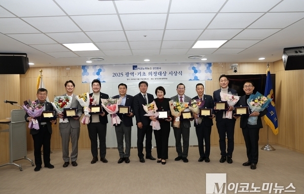 황대호, 지미연, 김선영, 이용호, 장한별 의원 등 경기도의회 의원 10명이「M이코노미뉴스 경인본사」주최 ‘2025 최우수 광역의정대상’ 을 수상했다. 「M이코노미뉴스」는 한 해 동안 의정활동을 충실히 해온 광역의원 등을 선정해 시상해 오고 있으며, 올해 시상식은 「M이코노미뉴스 경인본사」주최로 17일 오후 2시, 경기도의회 중회의실에서 열렸다. 최우수 광역의정대상을 수상한 황대호(더불어민주당,수원3) 의원은 “뜻깊은 상을 받을 수 있게 되어 너무나 감사드리며, 계속해서 경기도와 수원을 위해 걸어가던 길을 묵묵히 걸어가겠다”면서 “앞으로도 다음 선거가 아닌 다음 세대를 위한 정치를 이어 나가겠다”고 수상소감을 밝혔다. 지미연(국민의힘,용인6) 의원은 “이렇게 뜻깊은 의정대상을 받게 돼 영광스러운 마음과 함께 무거운 책임감을 느낀다”며 “앞으로도 흔들리지 않는 원칙으로 도민의 든든한 버팀목이 되겠다는 약속을 드린다. 오늘 주신 격려를 마음에 새기고, 도민의 행복을 위해 더 부지런히 땀 흘리며, 여러분 곁에 있겠다”고 말했다. 김선영(더불어민주당, 비례) 의원은 “ ‘일하는 사람이 존중받고, 열심히 일하다 안전하게 가족의 품으로 돌아갈 수 있는 경기도’를 만들기