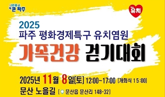 문산천 노을길을 따라 약 4.5km의 구간을 걷는 이 행사에는 ‘평화경제특구’ 유치에 관심이 있는 파주시민이라면 누구나 무료로 참여할 수 있다. 이날 행사장에서는 걷기대회 외에도 지역 예술인들의 특별공연 등 다채로운 볼거리가 열린다.