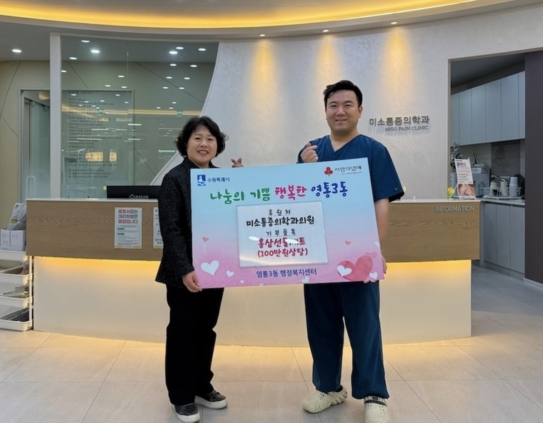 이번 기탁식은 미소통증의학과에서 진행되었으며, 영통3동은 관내취약계층 어르신과 저소득가정에 고루 전달할 방침이다.
