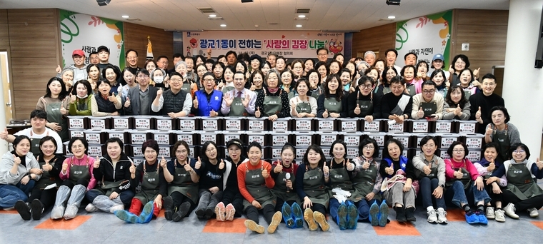 수원시 영통구 광교1동 단체장협의회는 "지난 13일, 관내 어려운 이웃을 돕기 위해 광교1동 단체원 등 100여 명이 참여한 ‘사랑의 김장나눔’ 행사를 추진했다"고 14일 밝혔다.