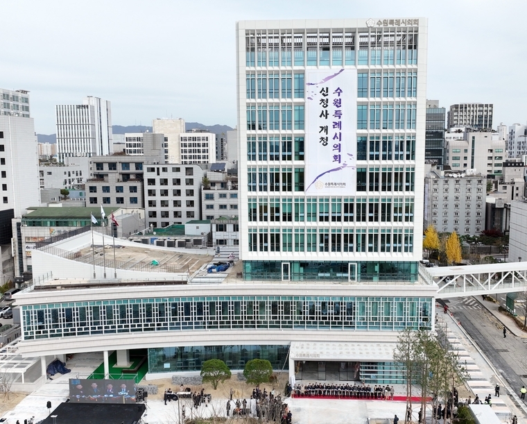 이재준 시장도 개청식에 참석해 "의회청사 건립 첫 논의 이후 10년, 첫 삽 이후 4년이라는 오랜 기다림 끝에 ‘의회 독립’이 이뤄졌다"며"수원특례시의회가 전국에서 손꼽는 ‘민의의 전당’으로서 더 성장하기를 기원하며 오늘 개청식이 그 출발점이 될 거라 믿고 수원특례시의회 의원님들을 포함해 함께하신 모든 분께 감사드린다"고 축하했다.