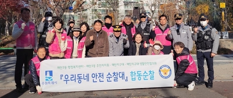 수원시 영통구 매탄3동(동장 김병목)은 "지난 11월 28일, 매탄지구대(대장 공석호), 매탄3동 주민자치회(회장 정희경)와 함께 ‘우리 동네 안전순찰대’ 4분기 합동순찰을 펼쳤다"고 1일 밝혔다.