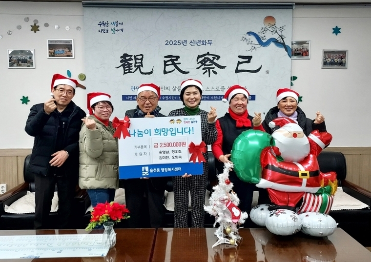 이번 기부에 참여한 위원들은 “크리스마스를 앞두고 어려운 이웃들에게 조금이나마 도움이 되고 싶었다”며 “따뜻한 나눔으로 율천동이 더욱 밝아지길 바란다”고 소감을 전했다.