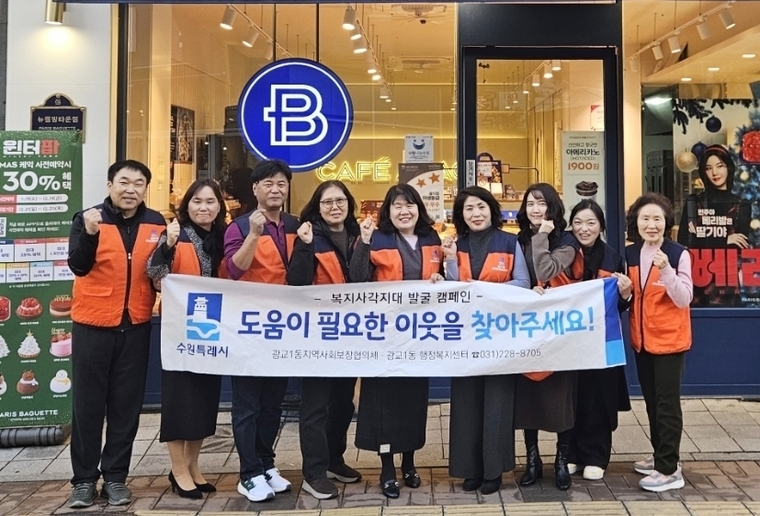 수원시 영통구 광교1동 지역사회보장협의체(위원장 임경자)는 광교1동 행정복지센터와 함께 지난 11일 광교중앙역 인근에서 복지사각지대 발굴 캠페인을 펼쳤다고 12일 밝혔다.