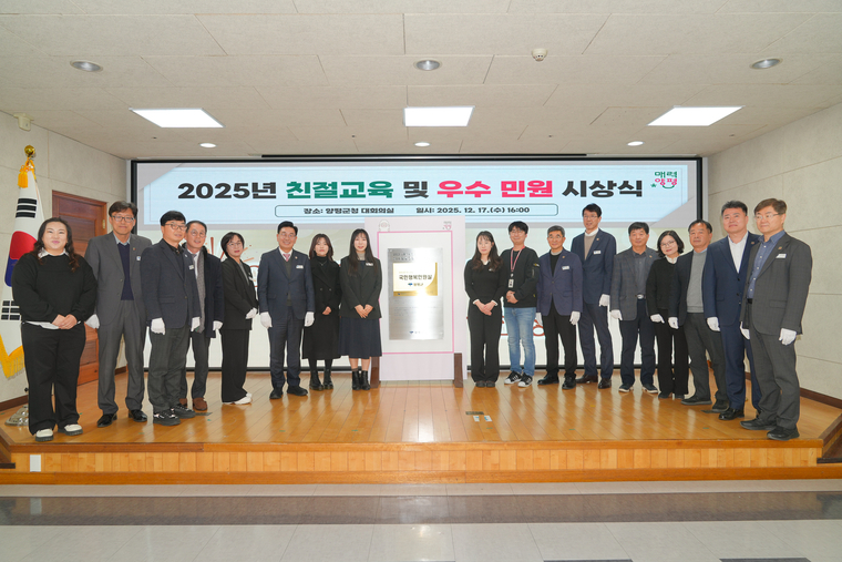 17일 군청 대회의실에서 개최된 ‘2025년 민원처리 우수 부서 · 공무원 시상식’에서 올 한 해 민원처리 우수 부서와 공무원 등 총 23명이 수상의 영예를 안았다.