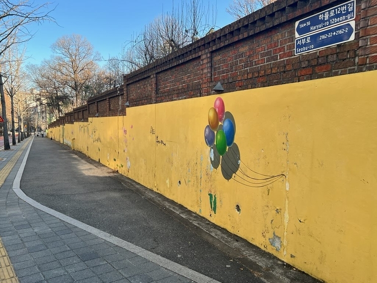 이 사업은 지난 2021년 5월 주민참여예산 사업을 통해 삭막했던 도심공간인 벽면에 대해 벽화 정비가 이루어진 곳이었다.