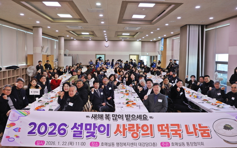 수원시 권선구 호매실동 통장협의회(회장 박왕근)는 “병오년 새해를 맞아 호매실동 행정복지센터에서 관내 어르신들을 초청해 떡국 나눔 행사를 추진했다“고 22일 밝혔다.