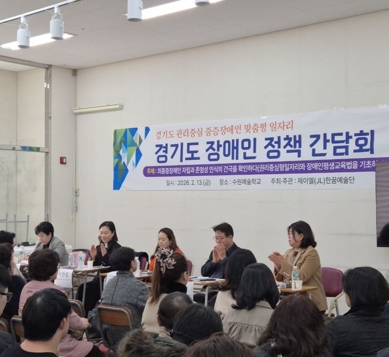 참석자로 수원특례시 임정완 시민협력교육국장, 제이엘한꿈예술단 김영식 이사장, 단국대 특수교육대학원 이정현 교수, 드림온학교 변선옥 교수 등 학계 전문가 등이 참석해 장애인 지원 정책의 현주소를 진단했다.