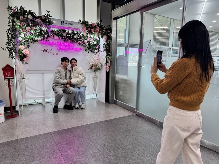 이런 가운데 수원시 팔달구가 구청에 혼인신고를 하러 오는 민원인들을 위한 색다른 이벤트 행사로 시선을 끌고 있다.