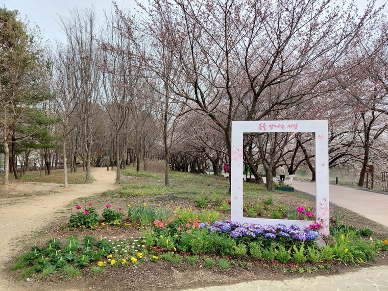 특히 포토존 주변에 식재된 다채로운 봄꽃과 자연스럽게 어우러지도록 조성됐으며, 화사한 꽃들과 함께 어우러진 공간에서 봄의 정취를 더욱 가까이서 느끼고 기록할 수 있는 쉼터로 각광을 받고 있다.