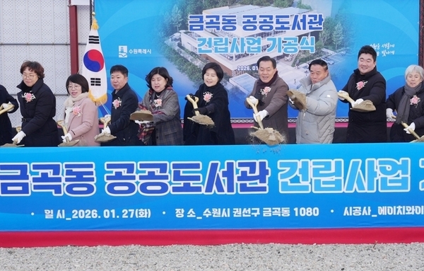 서수원권 주민들을 위한 공공도서관이 들어선다. 수원시가 권선구 금곡동에 공공도서관 건립사업을 추진하는 것이다. 수원시는 "27일, 권선구 금곡동 1080번지 신축부지에서 '금곡동 공공도서관' 기공식을 추진했다"고 28일 밝혔다. 이날 기공식에는 이재준 수원특례시장, 이재식 수원특례시의회 의장과 백혜련(수원시을)의원, 수원시의회·경기도의회 의원, 주민 등이 참석했다. 이날부터 긴립공사에 들어간뒤 2027년 2월 완공해 같은 해 3월 개관할 계획이다. 총사업비 109억 원을 투입한다. 금곡동 공공도서관은 연면적 1694㎡, 지하 1층·지상 3층 규모로 건립된다. ▲1층 어린이·유아열람실, 다목적실, 휴게실 ▲2층 일반열람실, 독서테마스탠드 ▲3층 청소년열람실, 사무실, 라운지 등이 들어설 예정이다. 수원시에 따르면 "금곡동 공공도서관 건립 사업은 2021년 주민 서명운동을 계기로 시작된 사업"이라고 강조했다. 금곡동 일대에는 대규모 아파트 단지와 초중고교 등 교육시설이 밀집해 있지만, 걸어서 갈 수 있는 공공도서관이 없어 주민들이 지속해서 도서관 건립을 요구해 왔었고 그 결실을 이뤄낸 것이다. 수원시는 지방재정 투자심사와 공유재산 심의, 건축설계 용역 등 사전