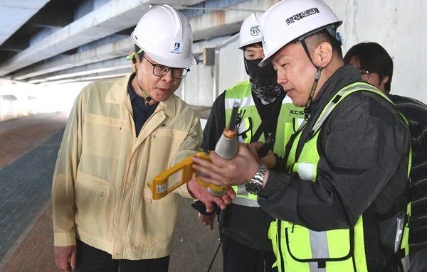 수원시 영통구가 정밀안전진단을 추진하고 있는 노후 교량인 원천1교에 대해 등 적극 대처해 나가고 있다. 수원시 영통구(구청장 장수석)는 "지난 2일, 매탄동 1228-5번지에 위치한 원천1교에서 진행 중인 정밀안전진단 현장을 찾아 장수석 구청장이 점검 상황을 직접 확인했다"고 3일 밝혔다. 영통구에 따르면 "이번 현장행정은 준공 후 30년이 경과한 교량의 안전성을 면밀히 살피고, 주민들이 안심하고 이용할 수 있는 도로 환경을 유지하기 위해 추진한 것"이라고 설명했다. 이번 정밀안전진단은 지난 3월 16일부터 오는 6월 3일까지 진행되는데 '육안조사'와 '비파괴시험' 등을 통해 교량의 구조적 안전성을 종합적으로 점검하고 있다. 특히 균열, 백태 등 외관 상태를 면밀히 조사하고, 고소작업차를 활용한 근접 외관 조사와 상부구조물 탄성시험 등을 통해 눈에 보이지 않는 미세 손상까지 확인하고 있다. 원천1교는 연장 138m, 폭원 30m의 왕복 6차선 교량으로 1993년 준공된 안전등급 C등급 시설이다. 이에 「시설물의 안전 및 유지관리에 관한 특별법 시행령」에 따라, 준공 후 30년이 경과한 정밀안전진단 대상 시설이다. 이날 현장을 찾은 장수석 영통구청장은 “주민들